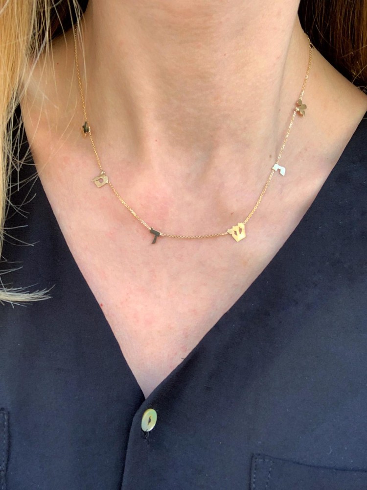 Choose up to 5 Hebrew letters or initials to have displayed on this unique Hebrew name necklace.