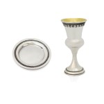 Cutout Wine Blessing with Swirls Silver Kiddush Cup