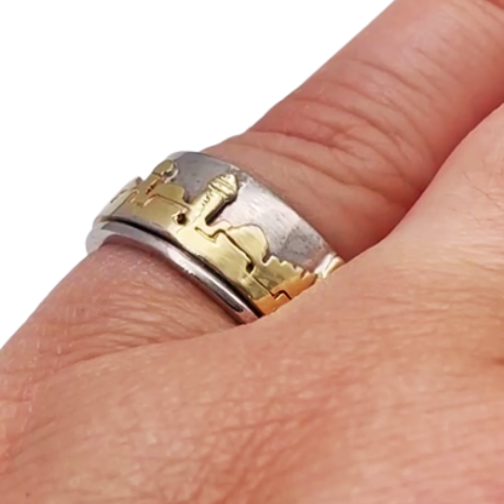 Silver and 14k Gold Jerusalem Skyline Ring